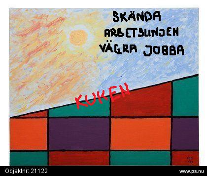 Ett konstnärskollektiv knutet till bokförlaget Roh-Nin i Stockholm har samplat Carl Johan De Geer och gjort en version av Sven Otto Littorins tavla. De kallar sin version ”Skända arbetslinjen”. Snyggt jobbat!