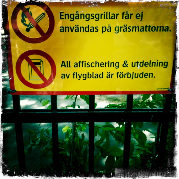 Flera andra läsare vittnar dock om att väktare , galleriaägare och ibland även kommunal förvaltning beter sig som om det vore förbjudet att dela ut flygblad. Skyltarna i inlägget sitter exempelvis vid ingångarna till Folkets park i Malmö.