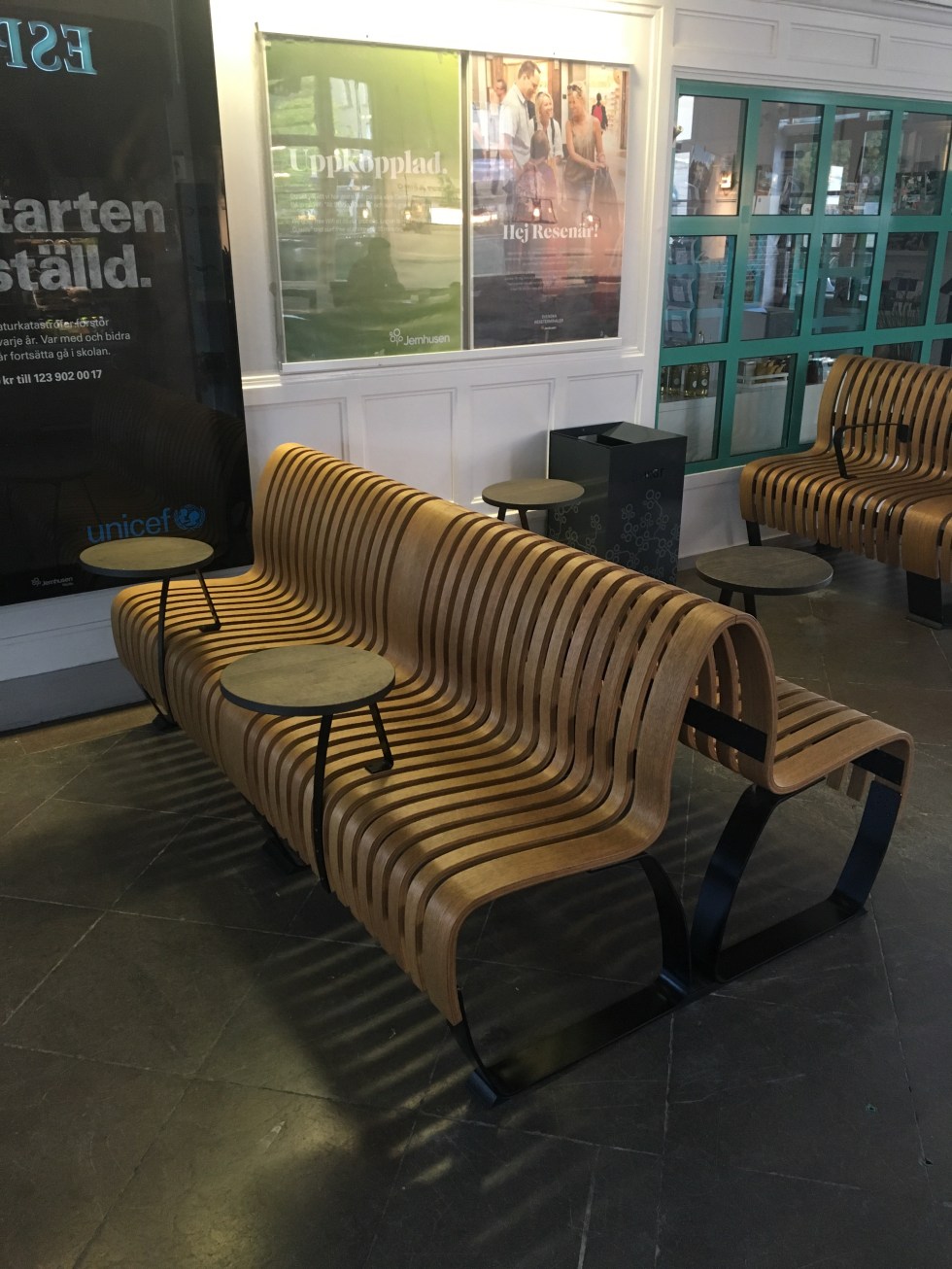 Passerade Katrineholm igen. Några av de exkluderande bänkarna på stationen har genomgått en smärre förändring. Armstöden på bänkarna har byts ut mot små fikabord. Praktiskt med tanke på att det ligger ett kafé precis bredvid. Då kan borden användas till att ställa en espresso eller sojavaniljkaramellatte på.