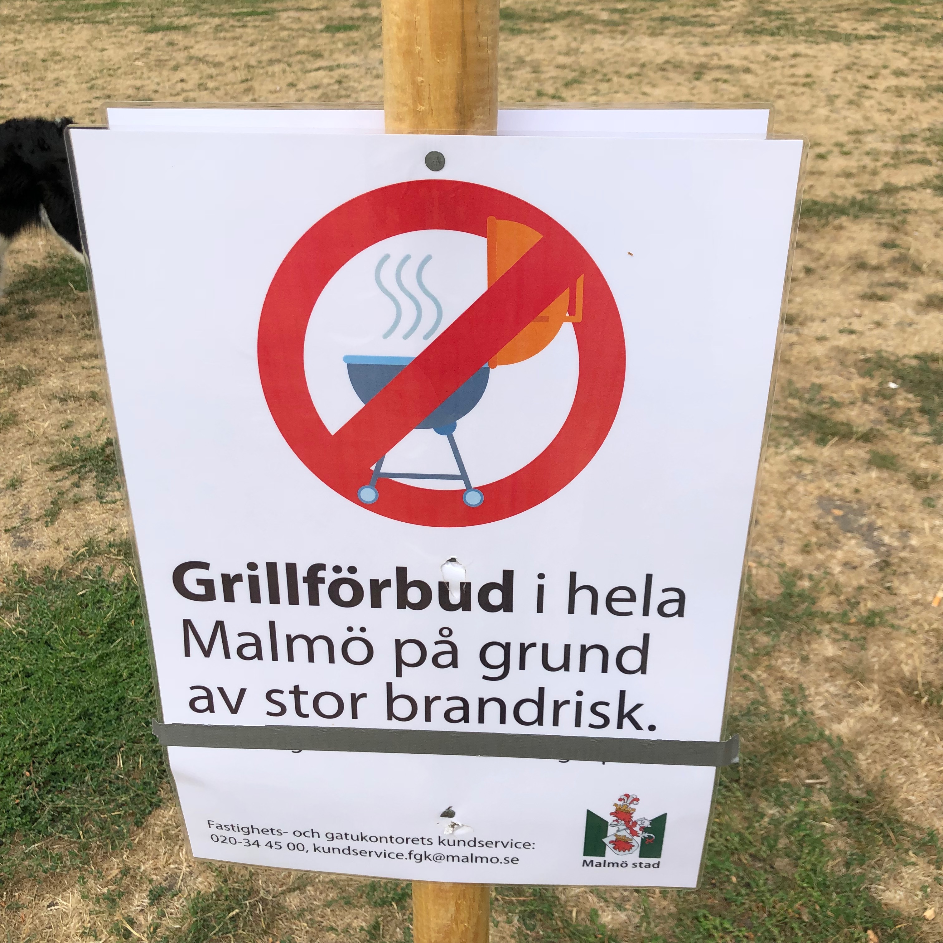 Under en av sommarens klimatvarmaste dagarna hittade jag de här två skyltarna i Slottsparken i Malmö. Den ena återfanns i ett buskage där människor brukar söka skydd från väder och vind. Den andra på gräsmattan bredvid.