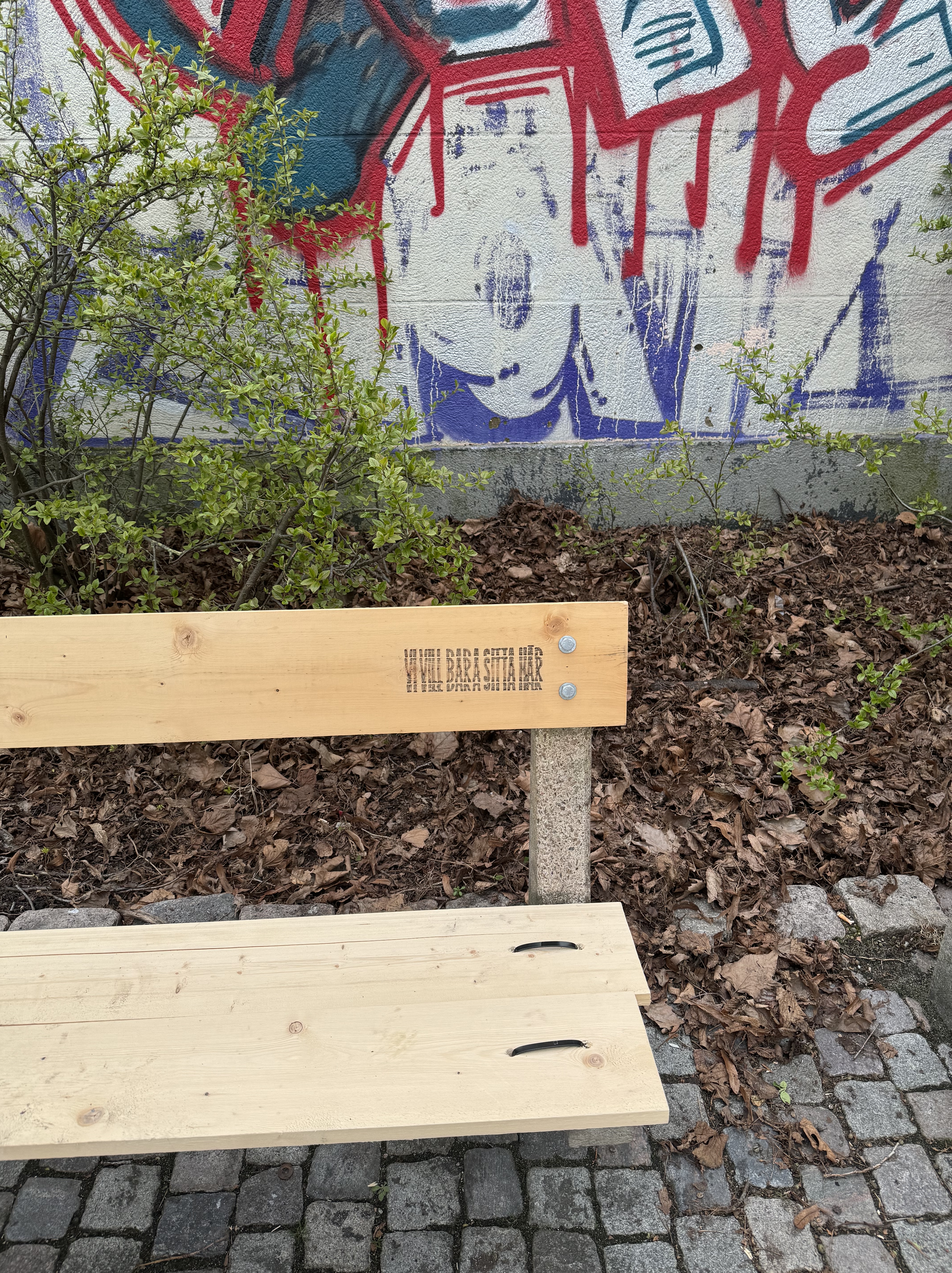 Alla fann sig dock inte i detta. Lundaborna Kaj Beppe Beto och Oskar Olsson tog saken i egna händer och monterade dit egna bänkskivor och ryggstöd. Några försedda med texten ”Vi vill bara sitta här”.