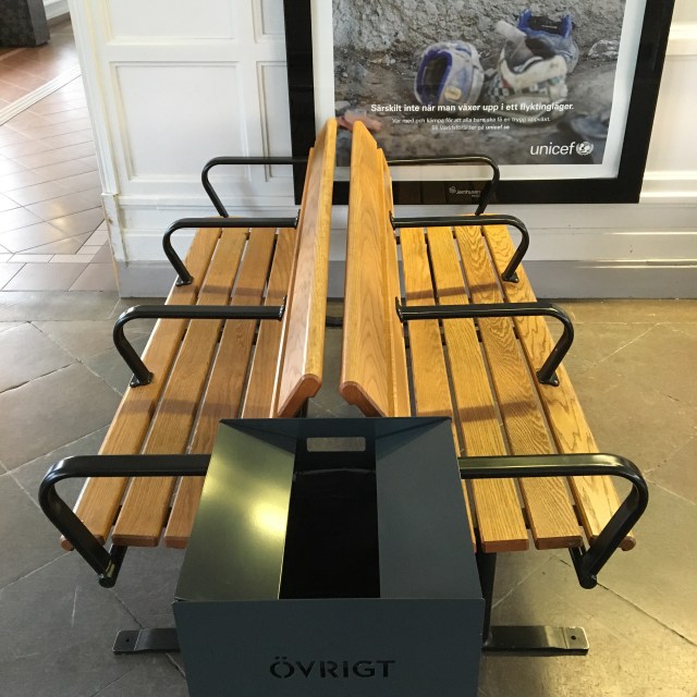Den här bänken återfinns på stationen i Katrineholm. Läs mer om exkluderande design
